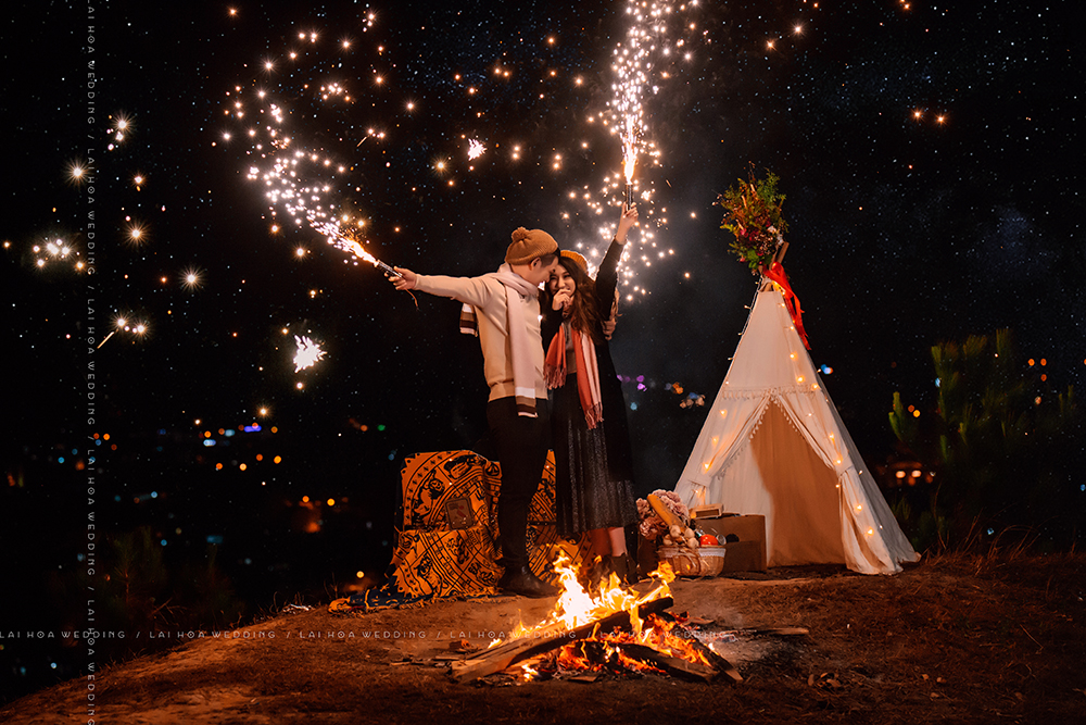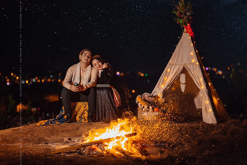 Loạt ảnh được thực hiện vô cùng sống động bởi ê kíp Lai Hoa Wedding, lúc thì bình yên nhẹ nhàng giữa mùa đông giá lạnh, lúc thì ấm áp của ngọn lửa tình yêu đôi lứa, giống như câu chuyện tình được kể lại từng cung bậc cảm xúc cho người xem.