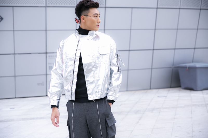 Quán quân The Face Vietnam 2018 yêu thích sự thoải mái, năng động nên đã chọn một chiếc bomber jacket ánh bạc đơn giản nhưng nổi bật, phối cùng áo cổ lọ bên trong để giữ ấm cơ thể. Ngoài ra, Trung Kiên còn diện quần baggy theo phong cách hip hop với điểm nhấn là khả năng “xẻ” ống cao ngút ngàn, vừa ấn tượng lại vừa giúp anh chàng thuận tiện, năng động trong việc di chuyển. Với set đồ đơn giản, Trung Kiên vẫn nổi bật và thu hút nhờ khuôn mặt sáng.